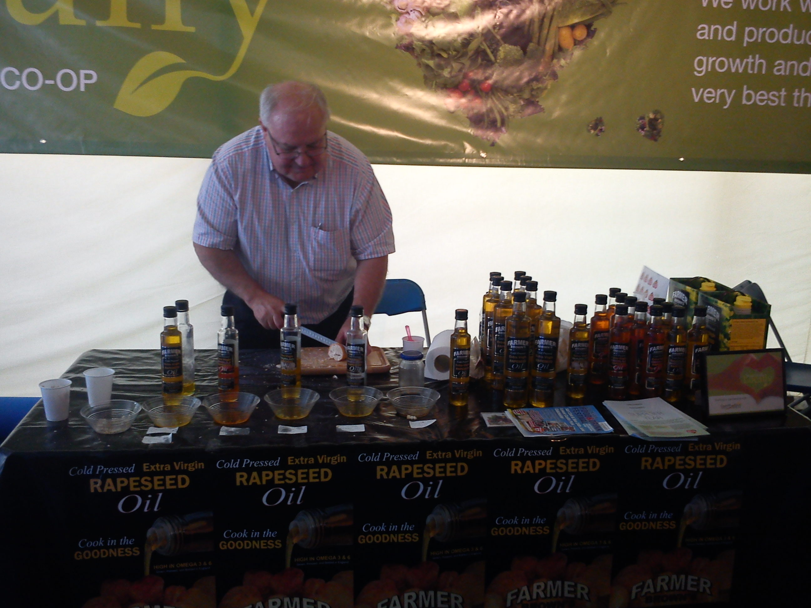 I’d have to say I would have missed Farmer Brown and his omega 3 and 6 rich wares as they were in the Co-Op tent which to me appeared to be a startlingly cynical marketing opportunity for the bloody co-operative food people who’s logo was already banded across something highly visible approximately every 20 yards. I’m not against them or anything, but I wouldn’t have bothered going inside as there was new and live foodie action everywhere else. However, two out of three companions were Co-op employees, eager to, well, go in and have a look, so we did. And here we had an unenthusiastic and kind of grumpy man doing his best to get people to buy rapeseed oil. Hmm. Poor salesmanship really isn’t enough to put me off of a free food sample- a wee bit of cracker and a free dip.
