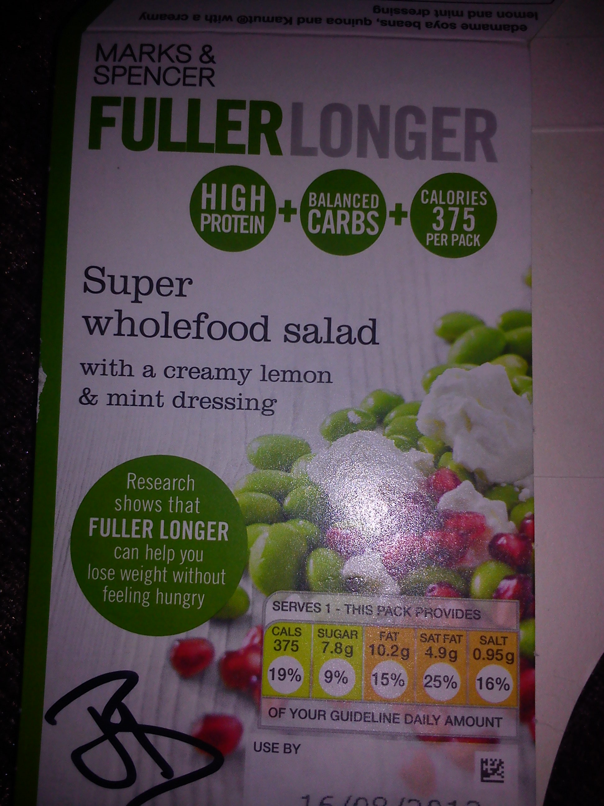 *drum roll please* Enter the M&S super wholefood salad. I’ll say I was sceptical on the ‘fuller longer’ tag as no matter what my lunch consists of I am always, always hungry again between two and three pm or as I like to call it- The Kit Kat hour. But super wholefoods, they have to be good right? And no bread, for me, is something of a no brainer when it comes to lunchtime saintliness. Plus it was only three quid and a much better wallet option than my usual scavenger hunt through the bakery and food to go sections. I bought it (yeah fine, and a smoothie too) then wound on my merry way to work, put it in the fridge and forgot about it. Lunch time came, and I wanted that sandwich I don’t mind admitting but ho hum, here we go. Remove cardboard sleeve, spend three minutes removing cellophane layer which only comes off in teeny tiny shreds, pour on creamy lemon and mint dressing, realise have left fork in kitchen, go back for fork, and consume.