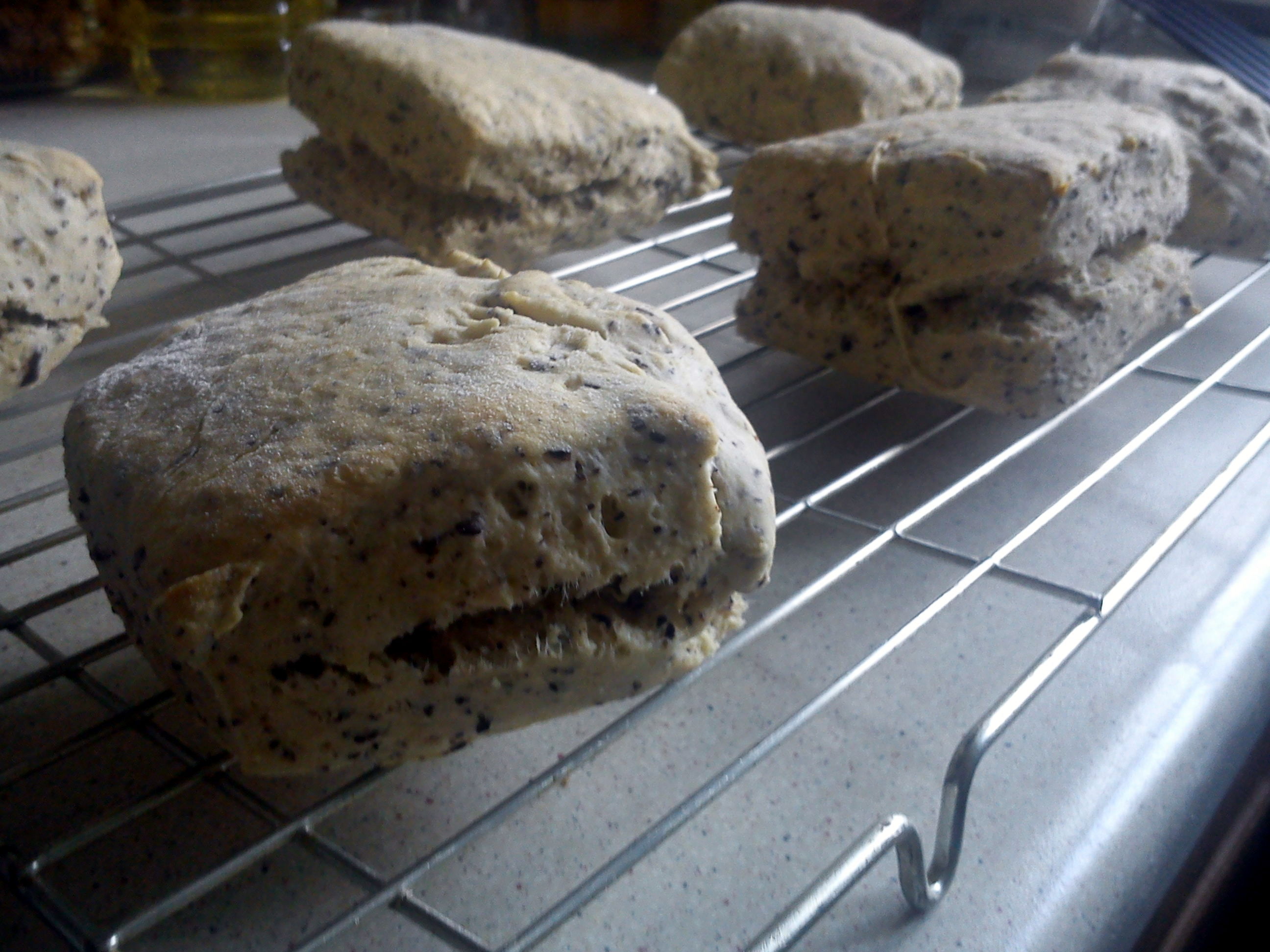 I love a scone and I’ve been missing a baked treat since beginning this vegan challenge so I rustled these up this afternoon and I’m pretty pleased. Quick to mix, baked in 10 minutes and as doughy and satisfying as I could have hoped for. Plus significantly lower fat than your average scone, so there! I’ve never been one to enjoy hours of cutting and re-rolling and cutting out little shapes from dough and I firmly believe that much like pastry- the more you work this kind of dough the heavier your end result will be. The delectable Valentine Warner made some square scones on telly the other weekend, and I am fully converted to his method for the rustic look to the end result as well as the reduced faffing in preparation.