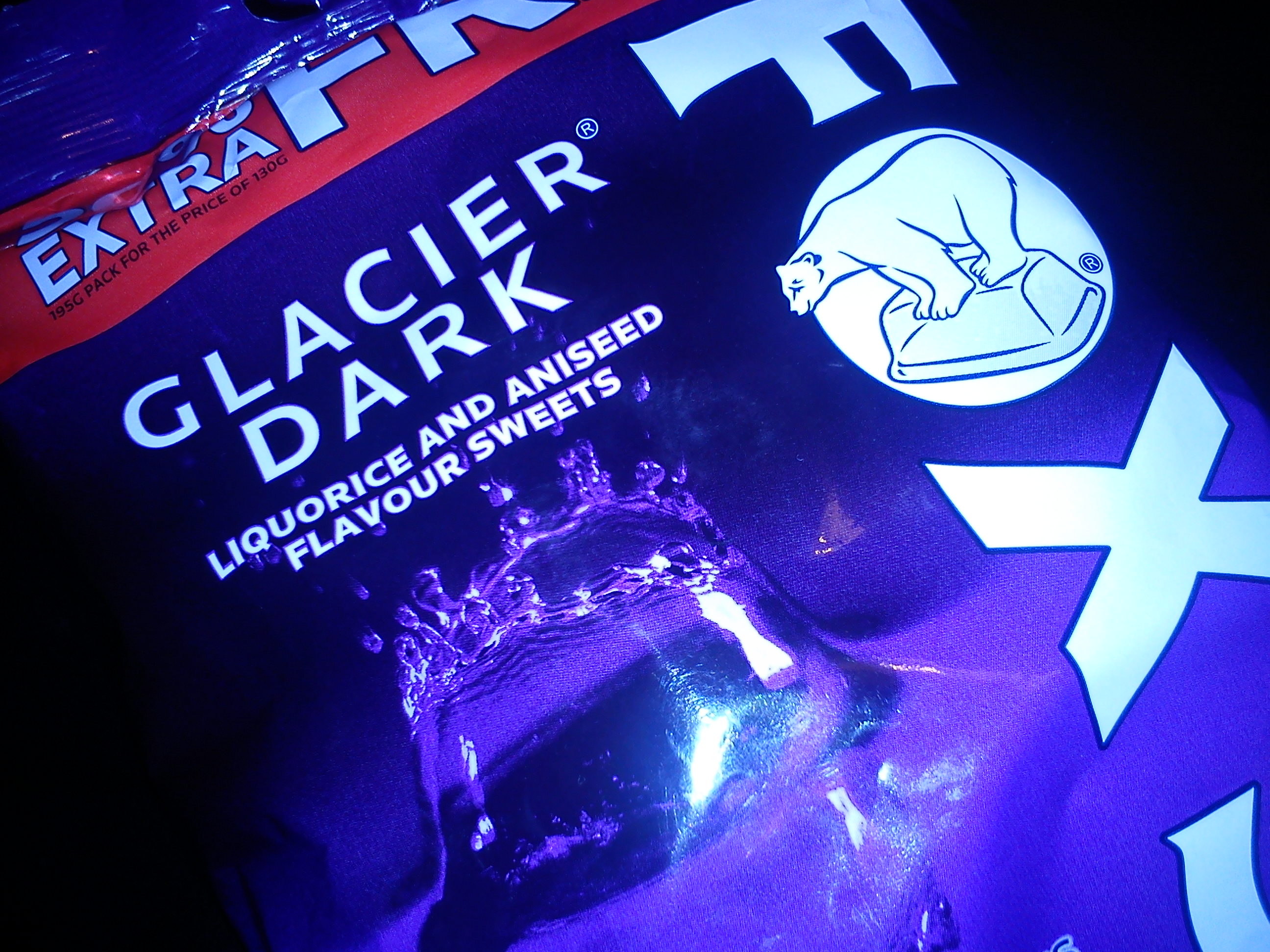 Glacier mints? Definitely, love them. Glacier fruits? Also good sweets to my mind but what is this, this purple, grown up, slightly sordid looking thing? Foxes Glacier Dark, aniseed and liquorice flavoured boiled sweets in the classic foxes brick shape. Small, sweet, and according to my sources, highly soluble in Russia’s finest export.