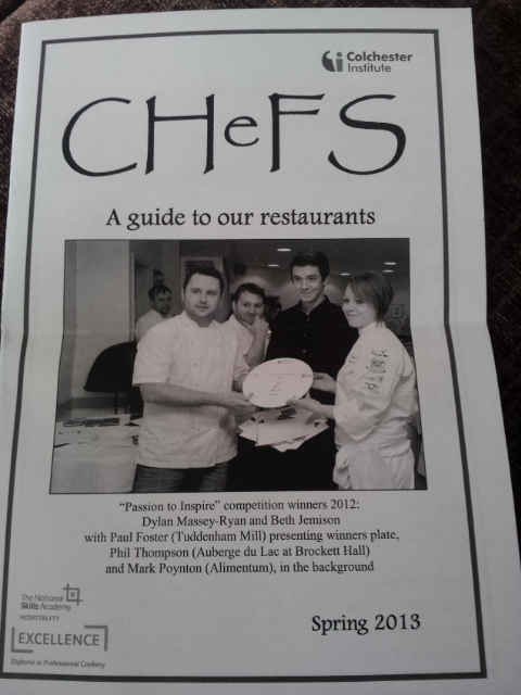 At my glorious establishment of employment this usually means a pannini and skinny fries at the pub a couple of doors away but this Friday just gone I was told I was going to the Clone Restaurant at the local college. It turns out that this was a comical typo and not some kind of Lucasfilm themed lunchery (I’m bagsing that idea for the future BTW) and we were headed to the Colne Bistro- one of three rather charming open to the public restaurants which form part of the catering college at Colchester Institute.