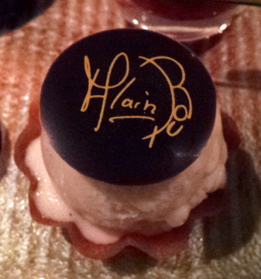 In brief, we sampled a slivered sea trout with a bright, vibrant avocado shot that tasted every bit as green as it appeared; fois gras (yes, yes the shame, I know I know) with brioche toast, a fantastic punchy salad bundle and popcorn; just cooked salmon in a fresh herb sauce; a rose sorbet made from the petals from the neighbours’ garden (red for the ladies, yellow for the chaps); beef-not-quite-wellington wrapped up in a mushroom pate and ultra thin, crispy brioche shell; a selection of cheeses two of which were surprisingly British with apricots and celery; the piece de resistance dessert plate of seven miniatures (introduced by Chef Roux himself. Squee!) and finally coffee and the most beautifully presented, perfectly formed little morsels of pastries and chocolates. It. Was. Exquisite. If I’m going to go on about anything it will be the beef- which was just rare in the middle and melt in the mouth tender but somehow not a trace of blood or excess moisture to be found. How the hell do you manage that? I will also go on about the wine served, ceaselessly, to compliment each course so well including a fish course Chablis that I shall continue to weep dream about for years to come. Oh and the pastries, the tiny, light tarts, the cloud like melting macarons, the little chocolatey pralinely thing that tasted like a big bite of Heaven’s Gates. I could go on about all of the food. But again, in brief, Exquisite.