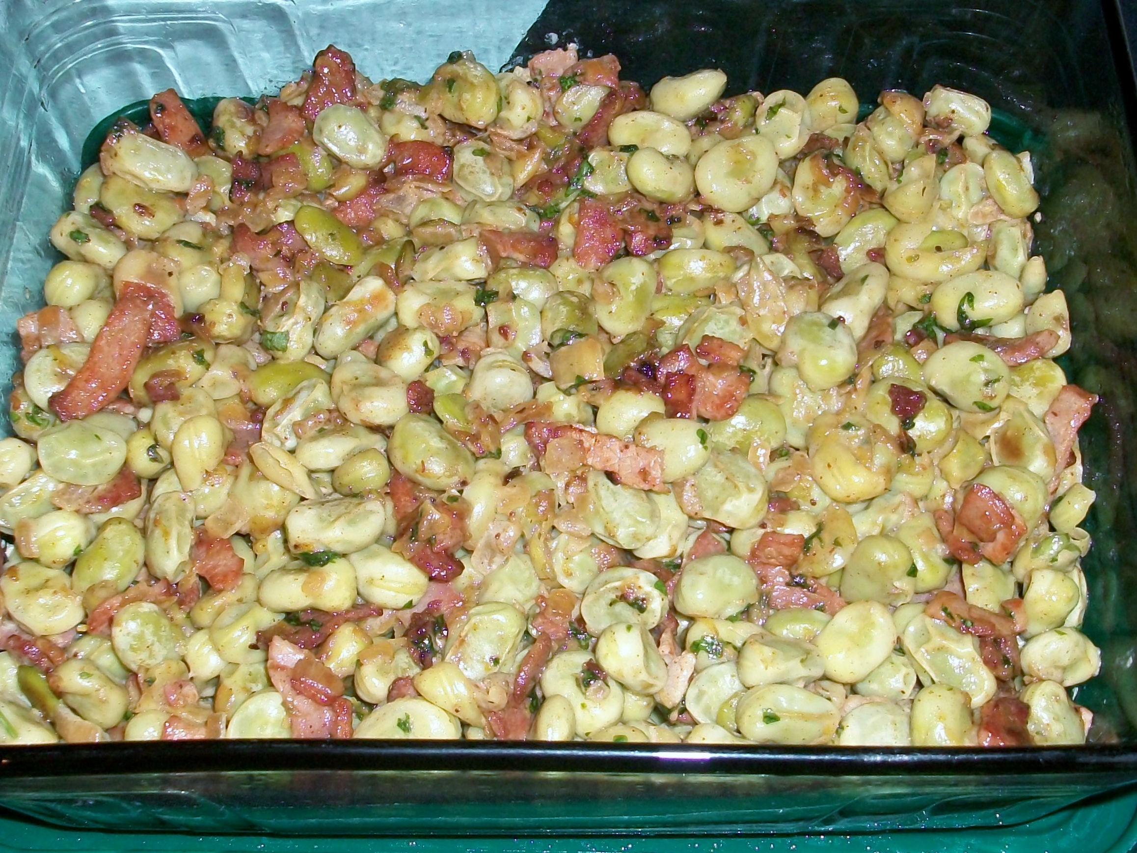Broad beans cooked in cream and lemon juice with more bacon. I'm a big fan of broad beans and was a big fan of this offering from Nigel, though the lemony finish took a bit of getting used to. Maybe two mouthfuls....