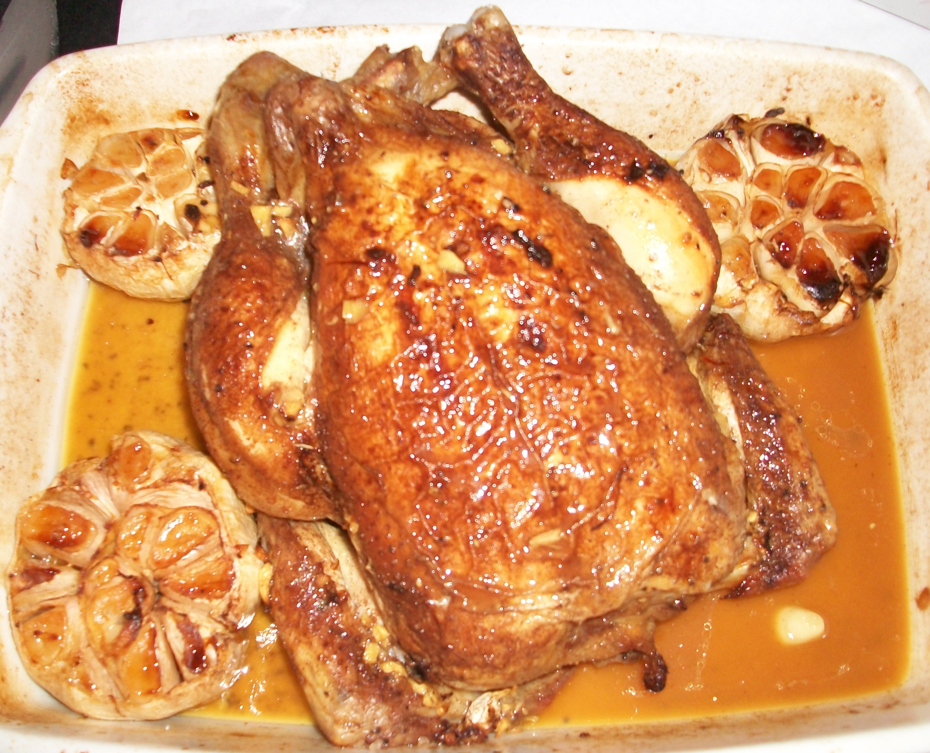 Medieval Roast Chicken from Matt. A fine and classic effort with sweet spices. Very well received and especially yummy when smooshed together with some of the roasted garlic.