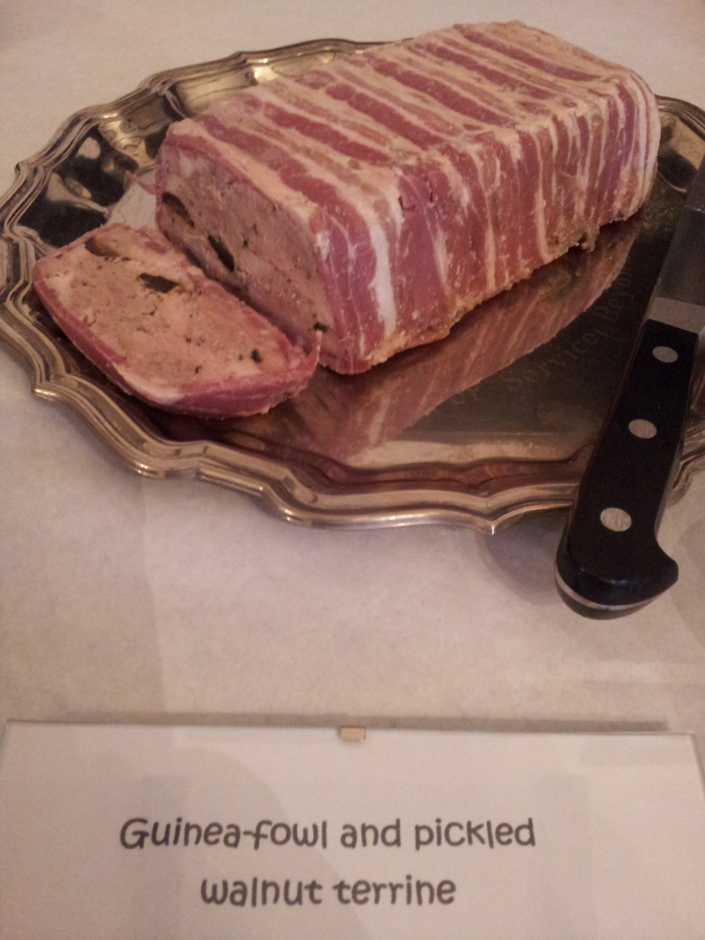 Guinea Fowl Terrine from Professor Stu with pickled walnuts and a bacon jacket. Absolutely delicious, solid and gamey broken up with those tart, soft walnuts. This is the kind of thing I could easily disappear on a cold sunday afternoon along with a loaf of crusty white and a bottle of aged red.
