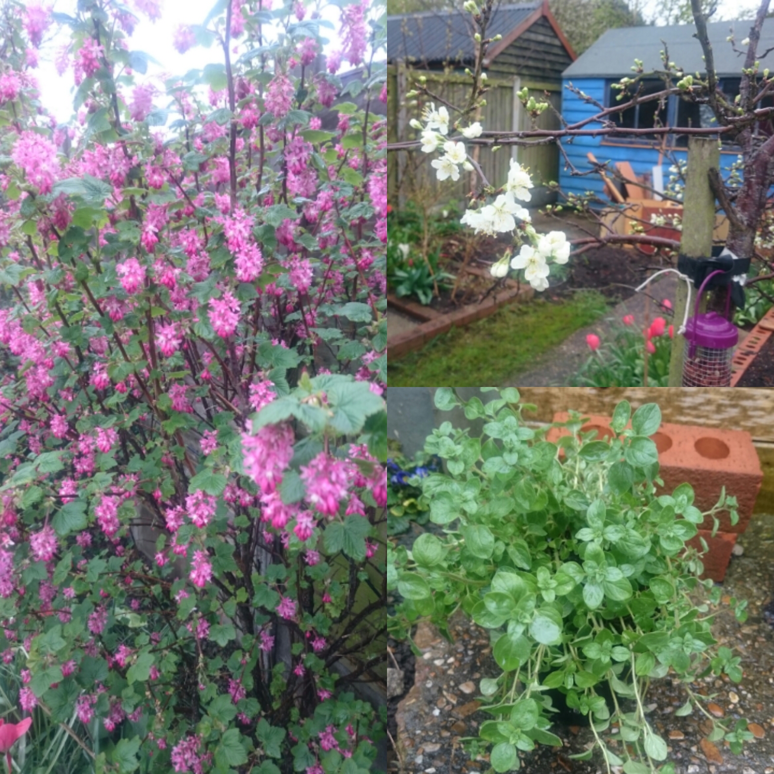 So, another rained off Saturday garden date however I can observe good things from this side of the patio doors. Although inedible, it is consistently satisfying to see a good splash of colour in the form of cherfully blooming tulips and a pink flowering shrub that may or may not be some kind of currant.