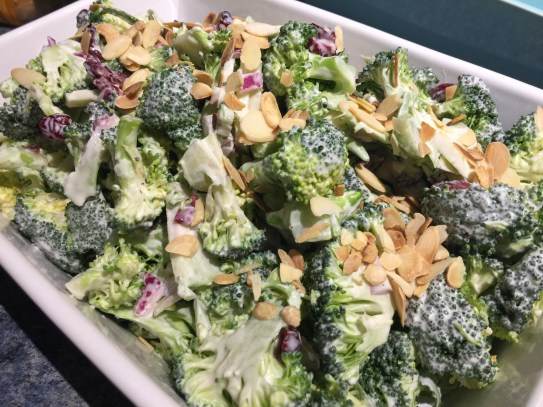 I first came across a broccoli salad as a side for possibly the best chicken wings I’ve ever eaten in Mighty Quinn’s East Village incarnation. How it took me 13 months to reproduce I’m not exactly sure, but I did in the end. My attempt came out for a soul food inspired family dinner recently and was a 100% hit with all involved. I’d even say it’s a bit better than the MQ version, but that might just be because there was so much of it- guys that tiny pot isn’t a taster, it’s a tease!