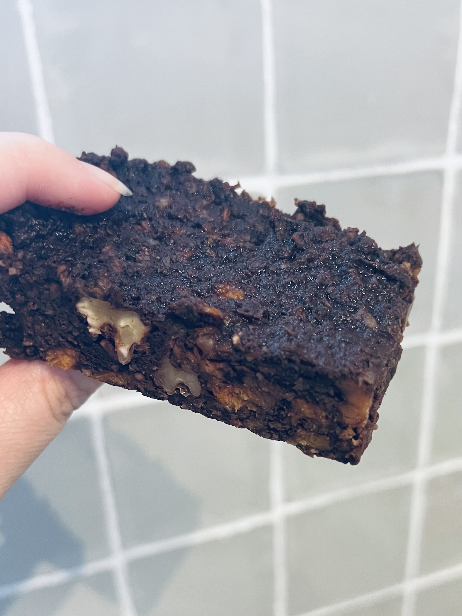 Friends, this brownie tasted the way that healthfood shops smelled in the early 90s. Namely like savoury, dry farts with a dying whisper of long forgotten chocolate.